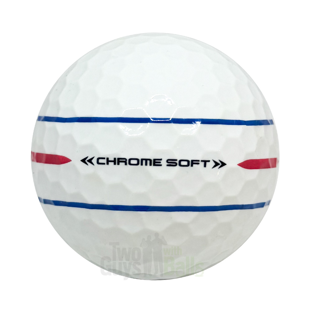 The Chrome Soft construction features a Hyper-Elastic SoftFast Core for faster ball speed and low driver spin, a soft cast urethane cover for tour-level spin and control, and a Tour Aero Dimple Pattern for stable, penetrating ball flight. The 360 Triple Track design gives visual feedback and alignment aid without altering performance characteristics.